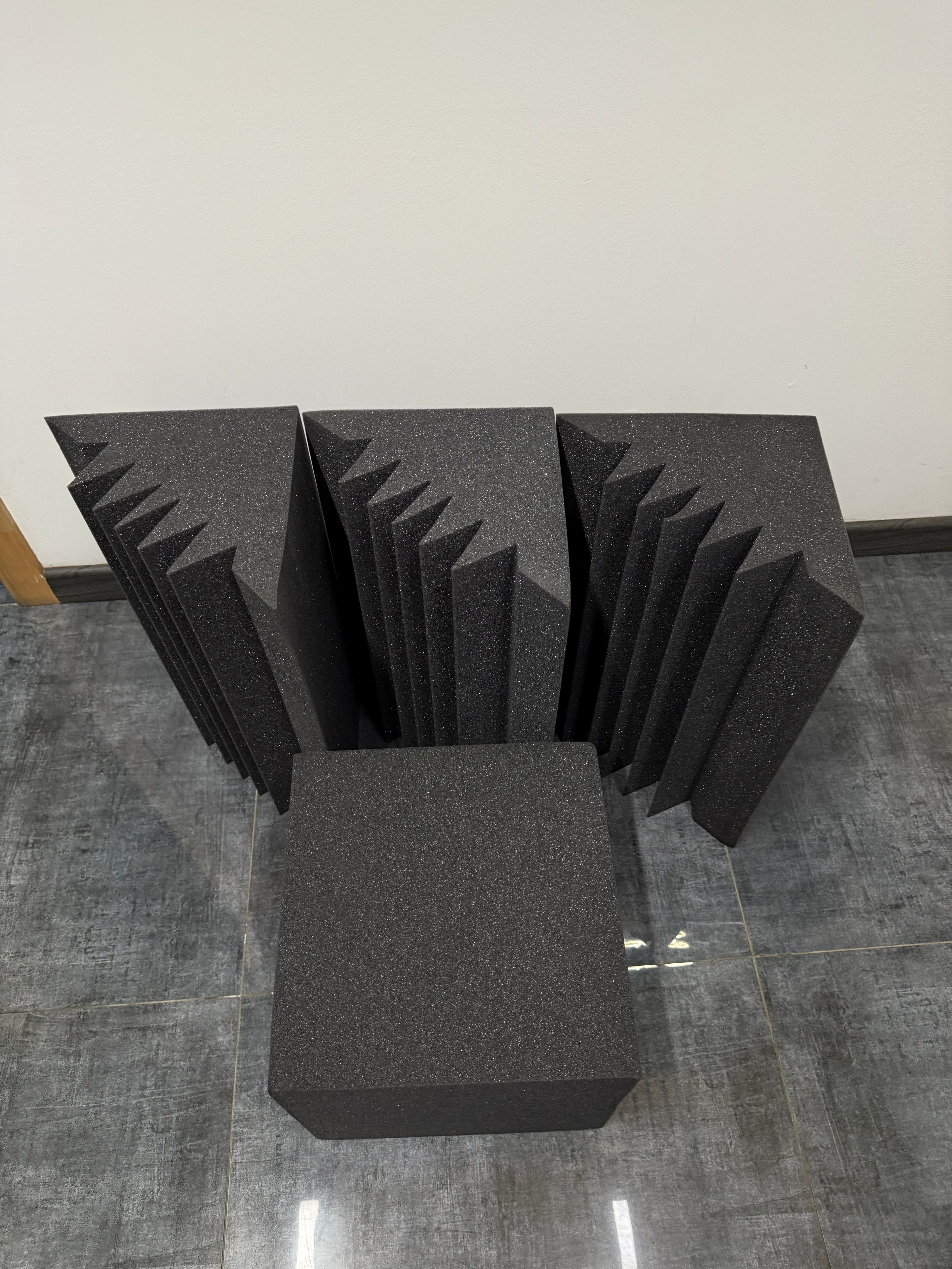 - Mayor absorción sonora: Gracias a su estructura celular uniforme, nuestras espumas ofrecen un alto coeficiente de absorción (NRC ≥ 0.8), lo que reduce eficazmente la reverberación y el eco. En cambio, otras espumas solo mejoran levemente el sonido.