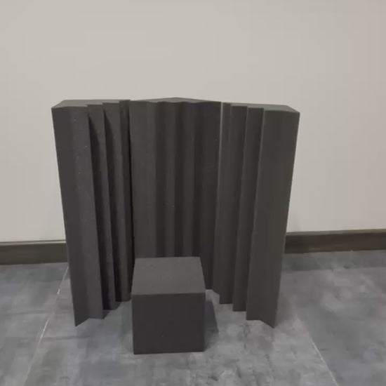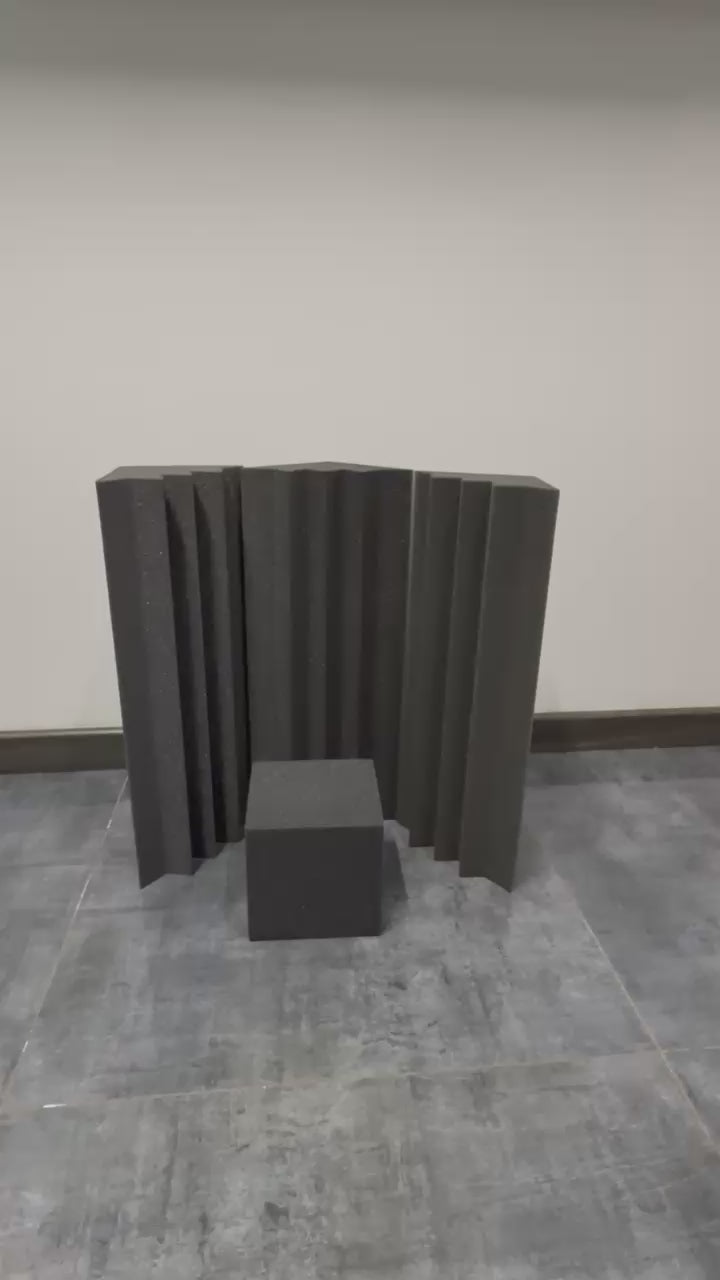 1 x Cubo Acústico (15x15 cm): El conector clave. Sirve como base o remate superior para darle continuidad estética y refuerzo de masa en el punto más crítico (la unión de tres paredes).