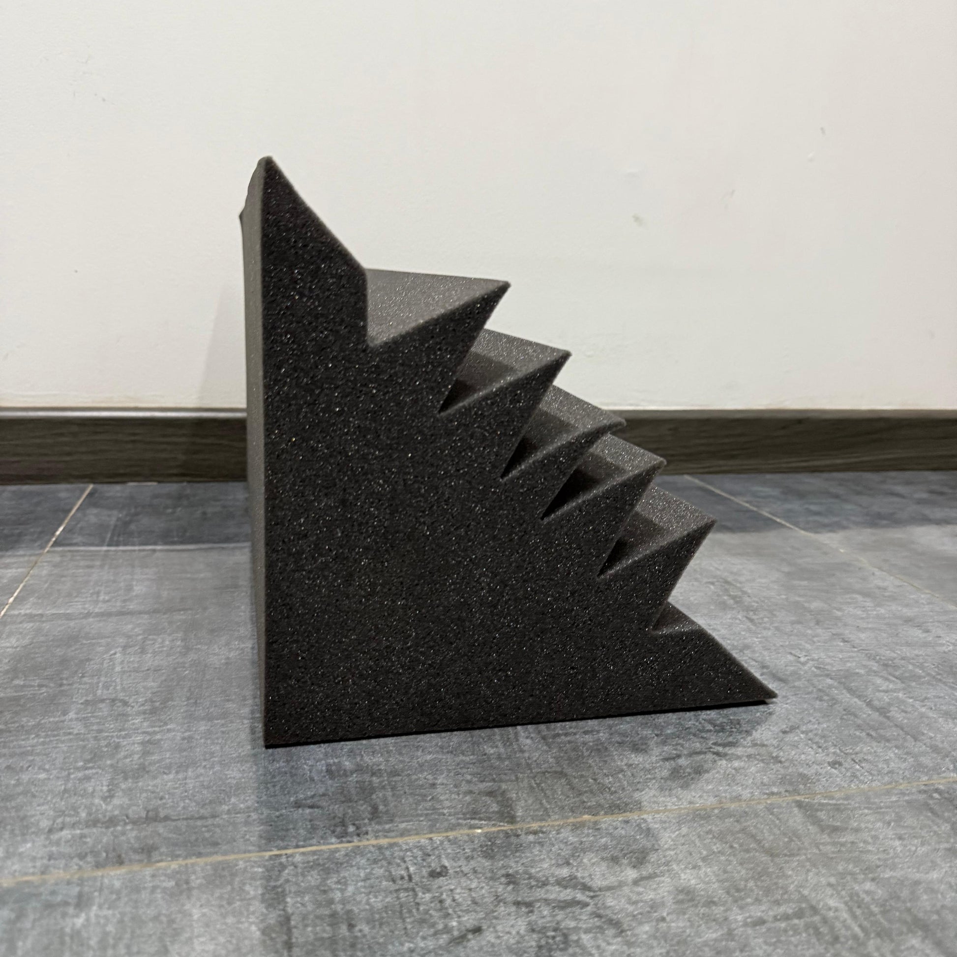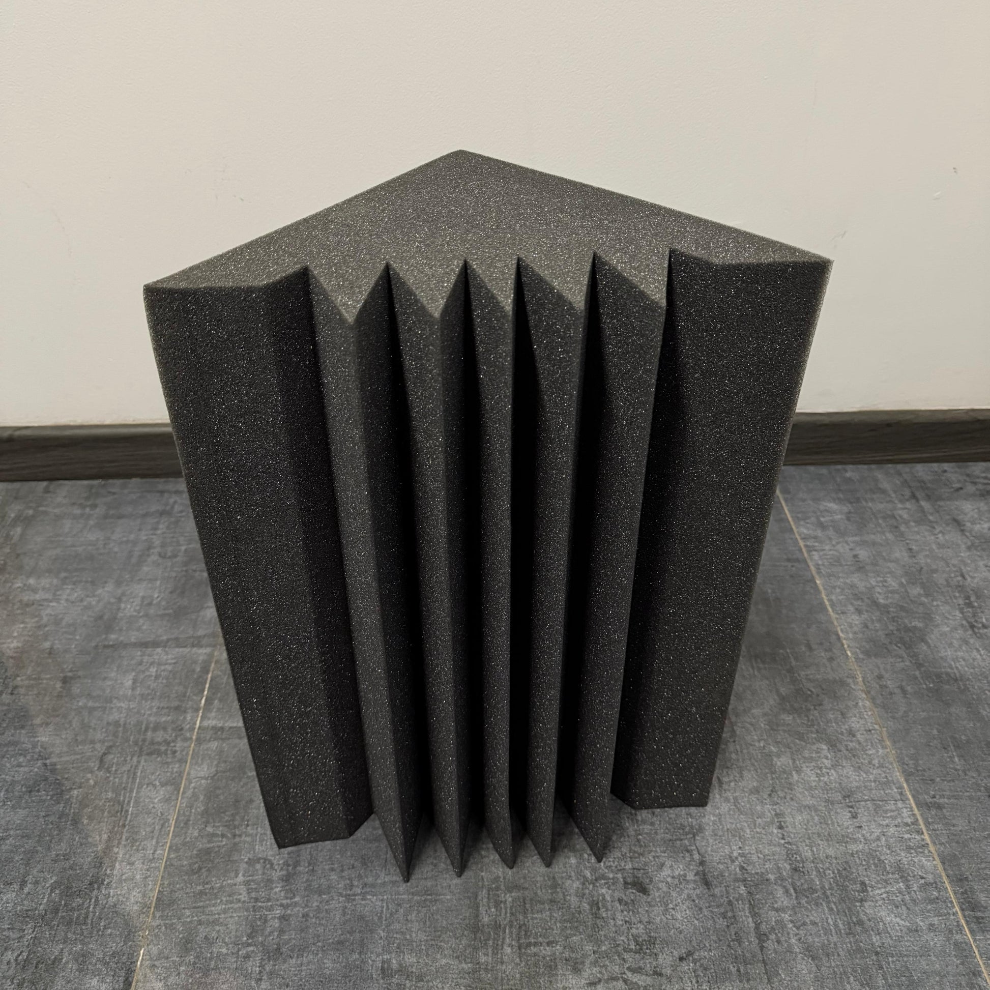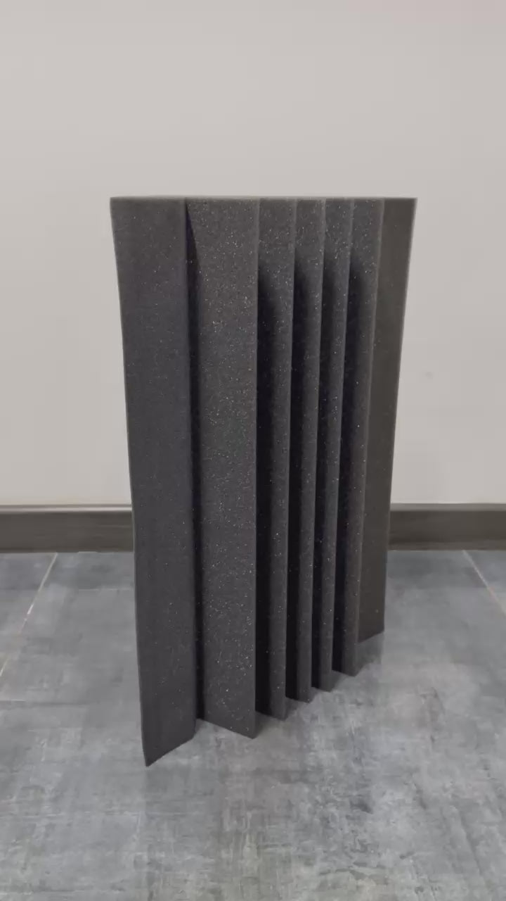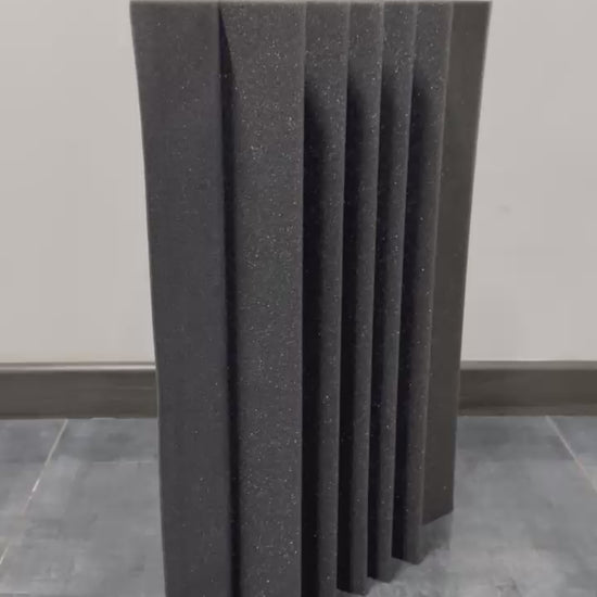Fabricada con espuma de Densidad 24, esta trampa esquinera actúa como un "freno" para las ondas sonoras más largas, evitando que reboten y se amplifiquen, lo que se traduce en un sonido más seco, definido y profesional.